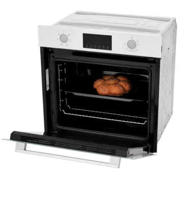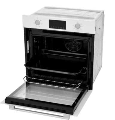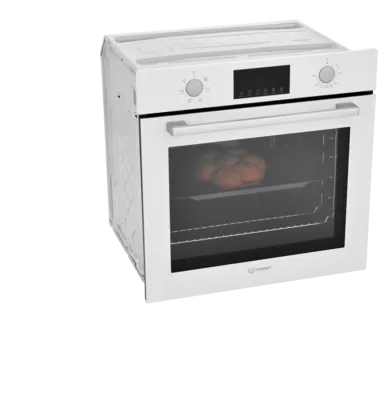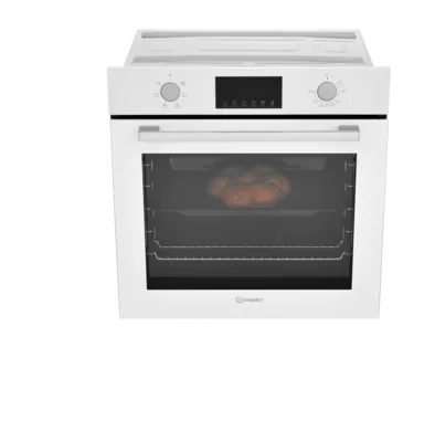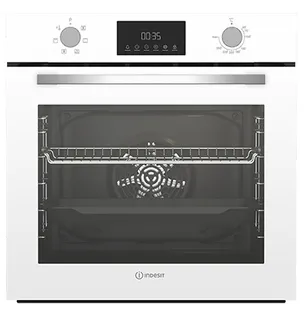 Встраиваемый духовой шкаф Indesit IFE 3644 J WH черного цвета – удобная в использовании модель высотой всего 59,5 см, шириной 59,4 см и глубиной 56,7 см.