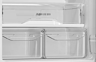 Вместительная холодильная камера с полезным объемом в 223 литра оснащена четырьмя дверными полками и тремя стандартными полками из крепкого закаленного стекла.