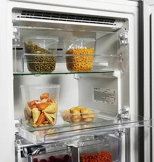 Общий полезный объем в 250 литров позволит сделать большие запасы. А две полки и пять ящиков внутри морозилки – удобно рассортировать их в соответствии с категорией продуктов.