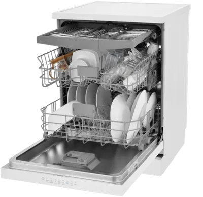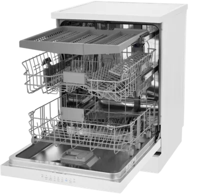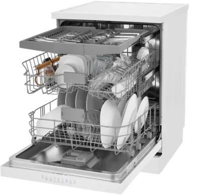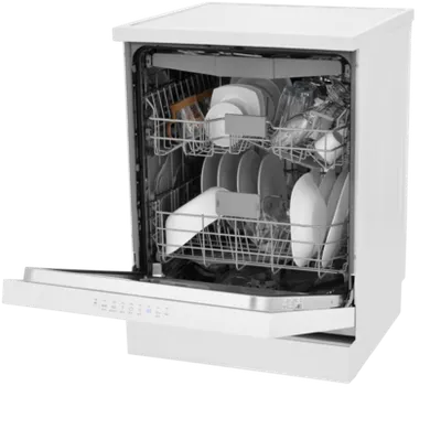 Бытовая техника может эффективно отмыть до 15 комплектов посуды за одну загрузку.