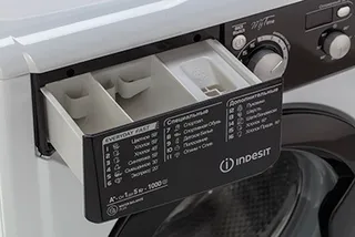 Стиральная машина Indesit EWSD 51031 BK CIS оснащена опцией отсрочки запуска до 24 часов и возможностью следить за этапами и временем до окончания программы.